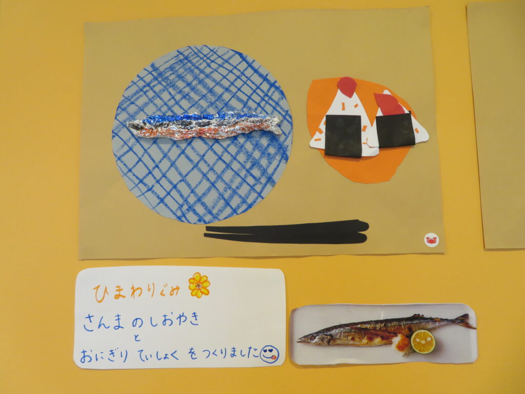 ひまわり組の子どもたちが作った製作物が玄関に飾ってありました!