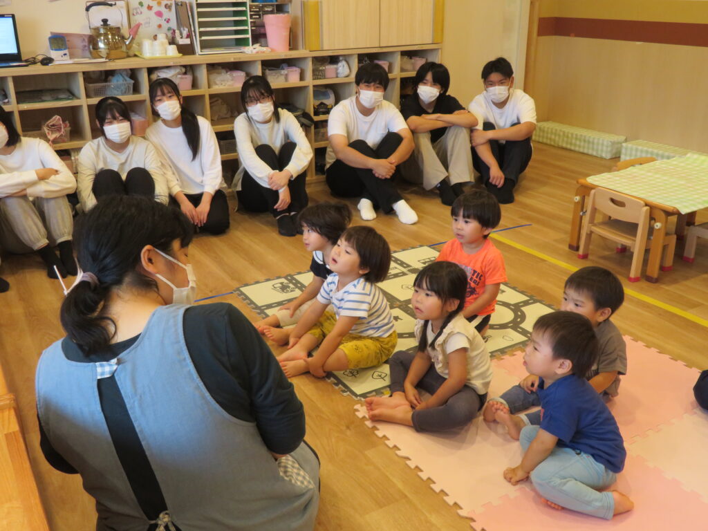 2歳児さんは学生さんと初めての対面に少し緊張気味…((;´・ω・`))