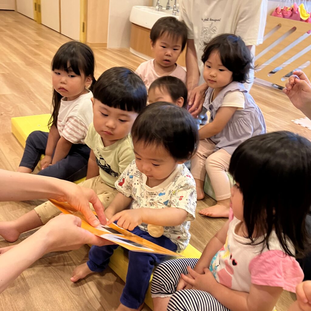 2歳児さんと年少さんは、歯磨きの絵本を読んだあと、仕上げ磨きについてのお話になると「ライオンさんとかカバさんみたいに大きいお口を開けてしてもらう!」と歯科衛生士さんにお話ししていた年少さん✨