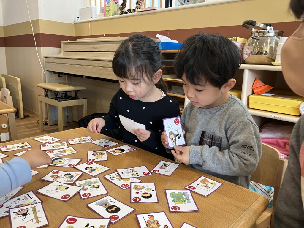 年齢毎に分かれて手作りのカードを使って神経衰弱をしました(^^♪