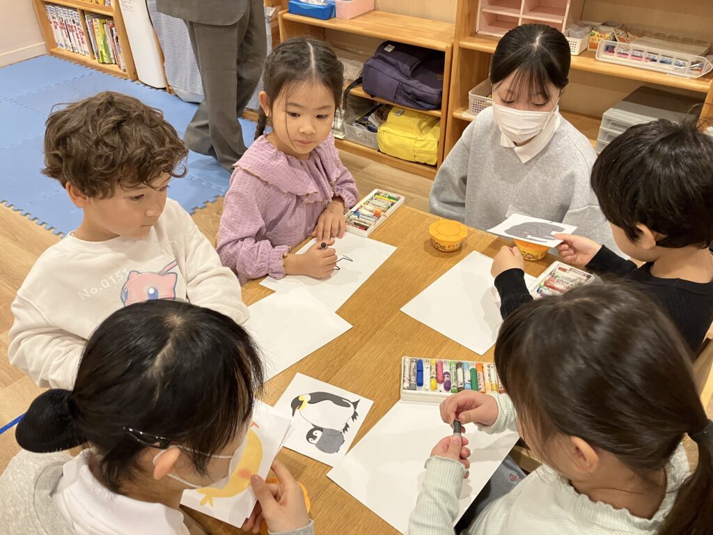 画用紙に動物を描いていきます。学生さんが持って来てくれたイラストをお手本にしたり、オリジナルの動物を描いたりとみんな集中して取り組んでいました✨