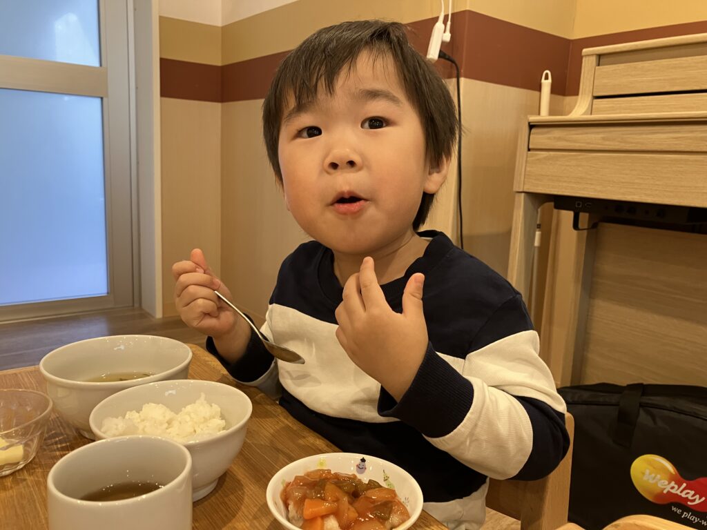 「給食おいしかった?」と聞くと「おいしかった!」と元気に返してくれました✨