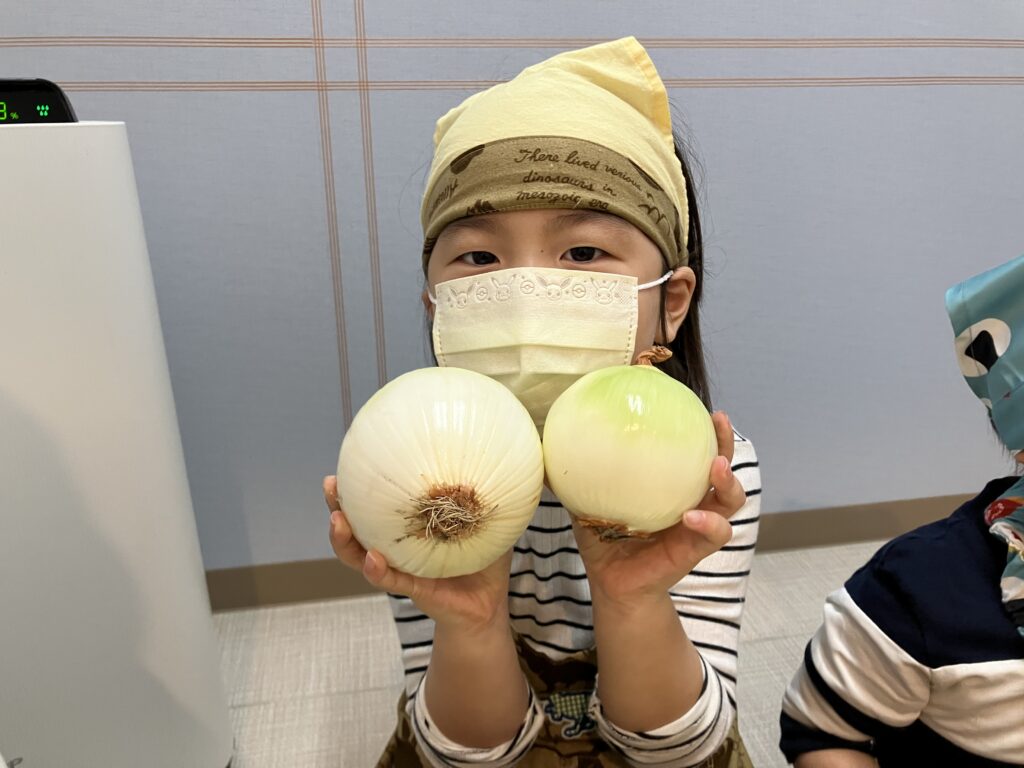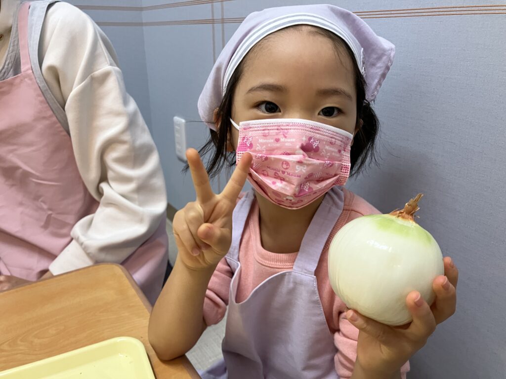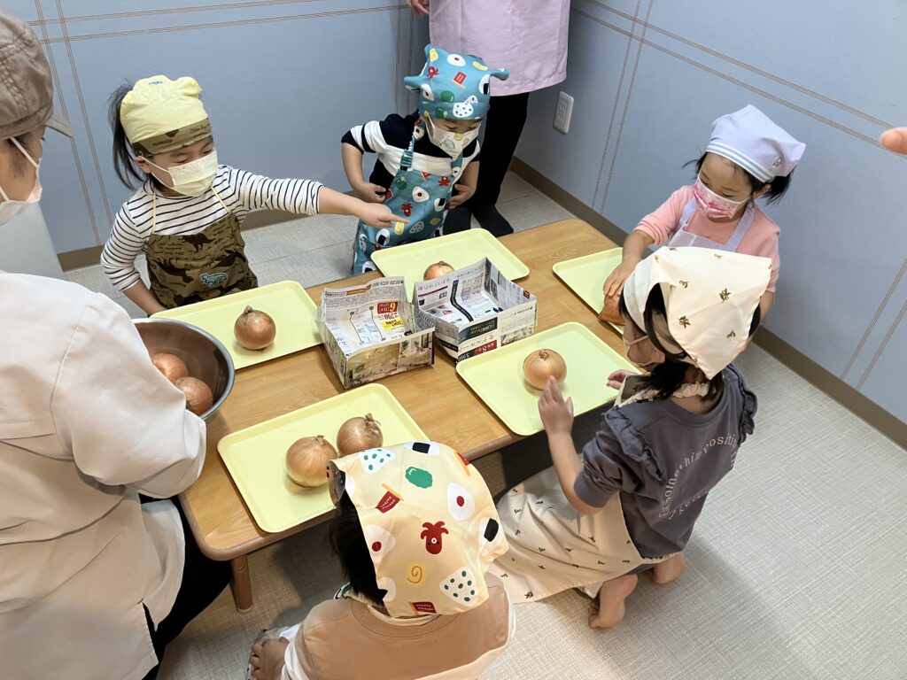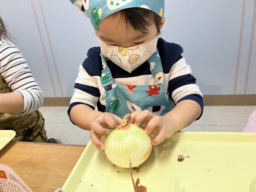 27日(木)は「お手伝いの日」でした!今回は年少さんが玉ねぎの皮むきに挑戦です✨