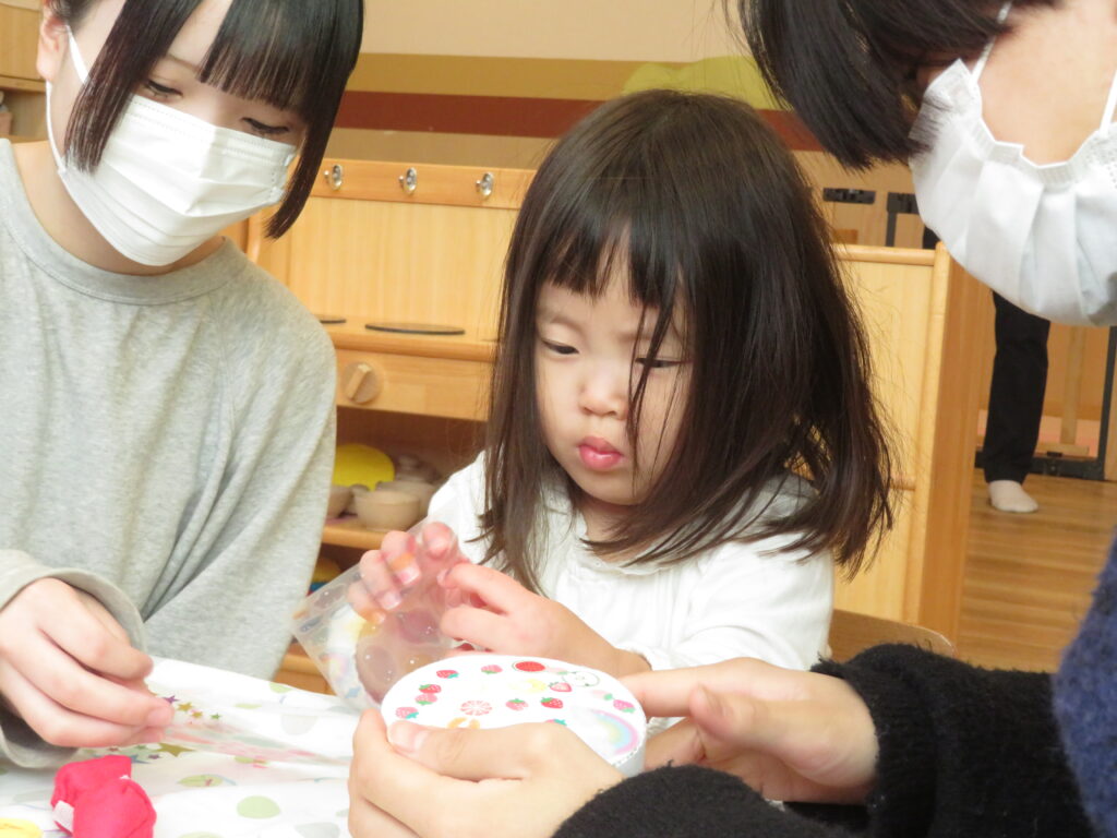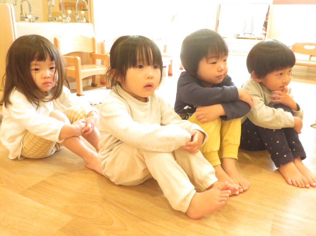 お歌の後は、『サンタッタ』を歌いながら手拍子をしたり👏、リズムに合わせて足をグーパー✊✋