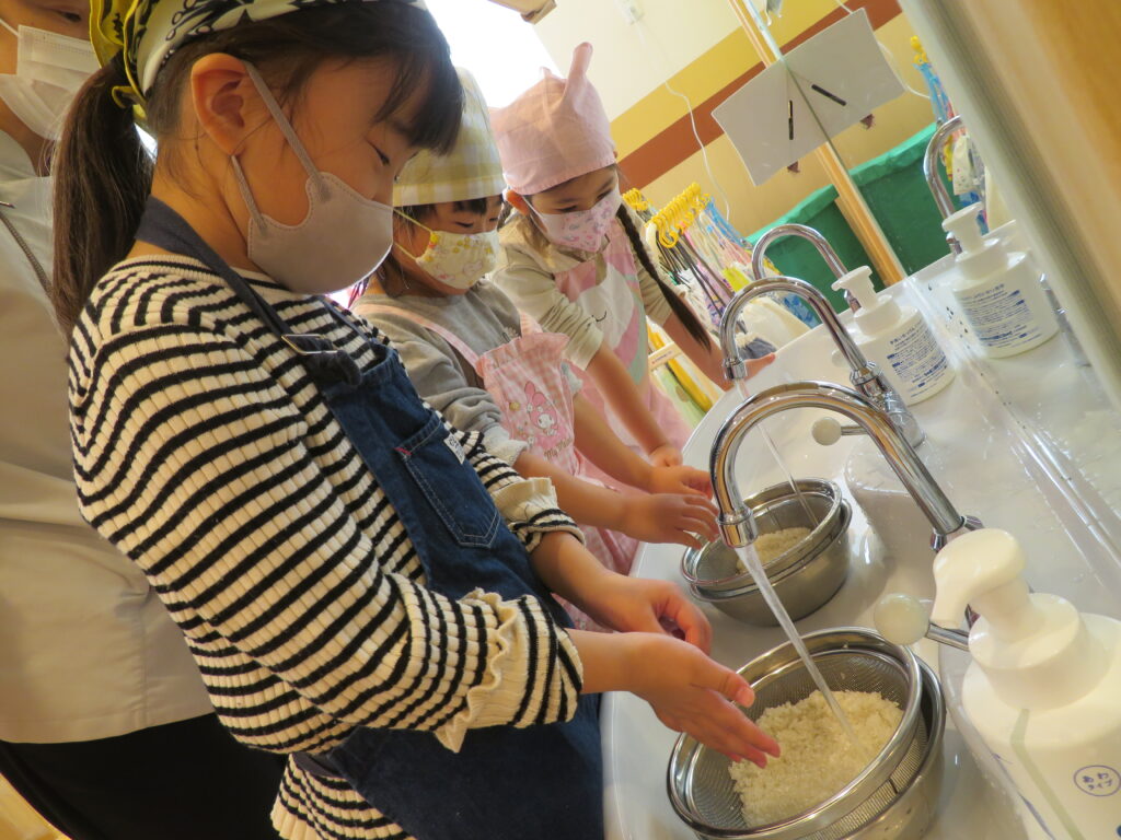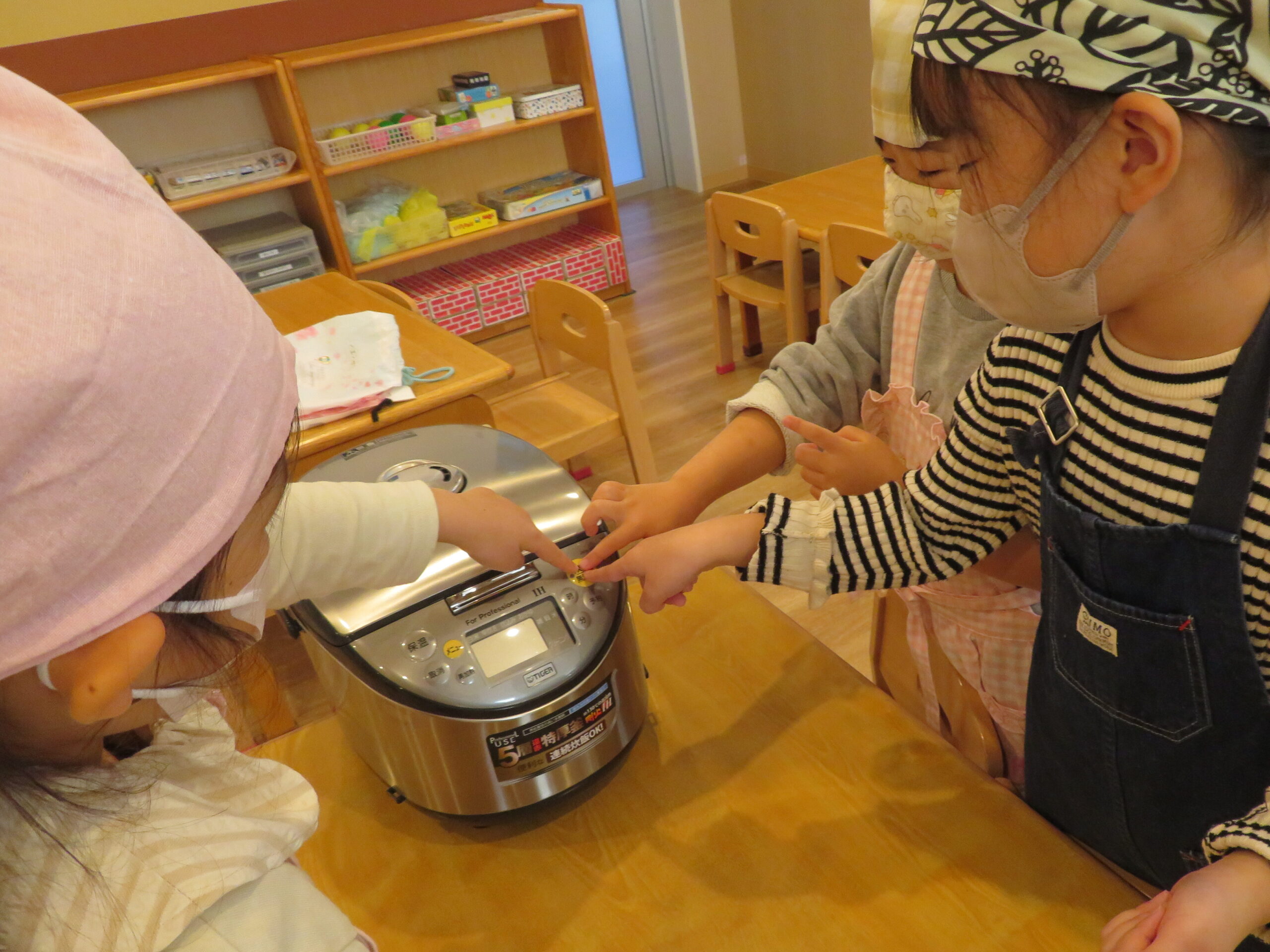 協力しながら進めていき、最後にみんなで炊飯器のスイッチをオン!