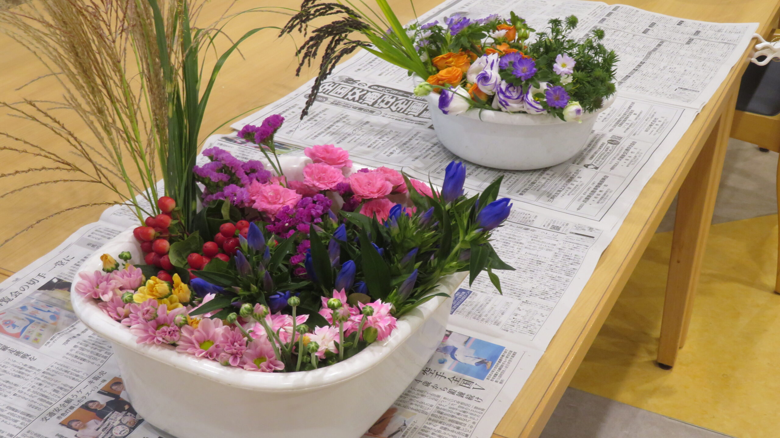 9/25(木)はリコルスひめじオパール姫路別館にて利用者さんと一緒に『お華』をしました。