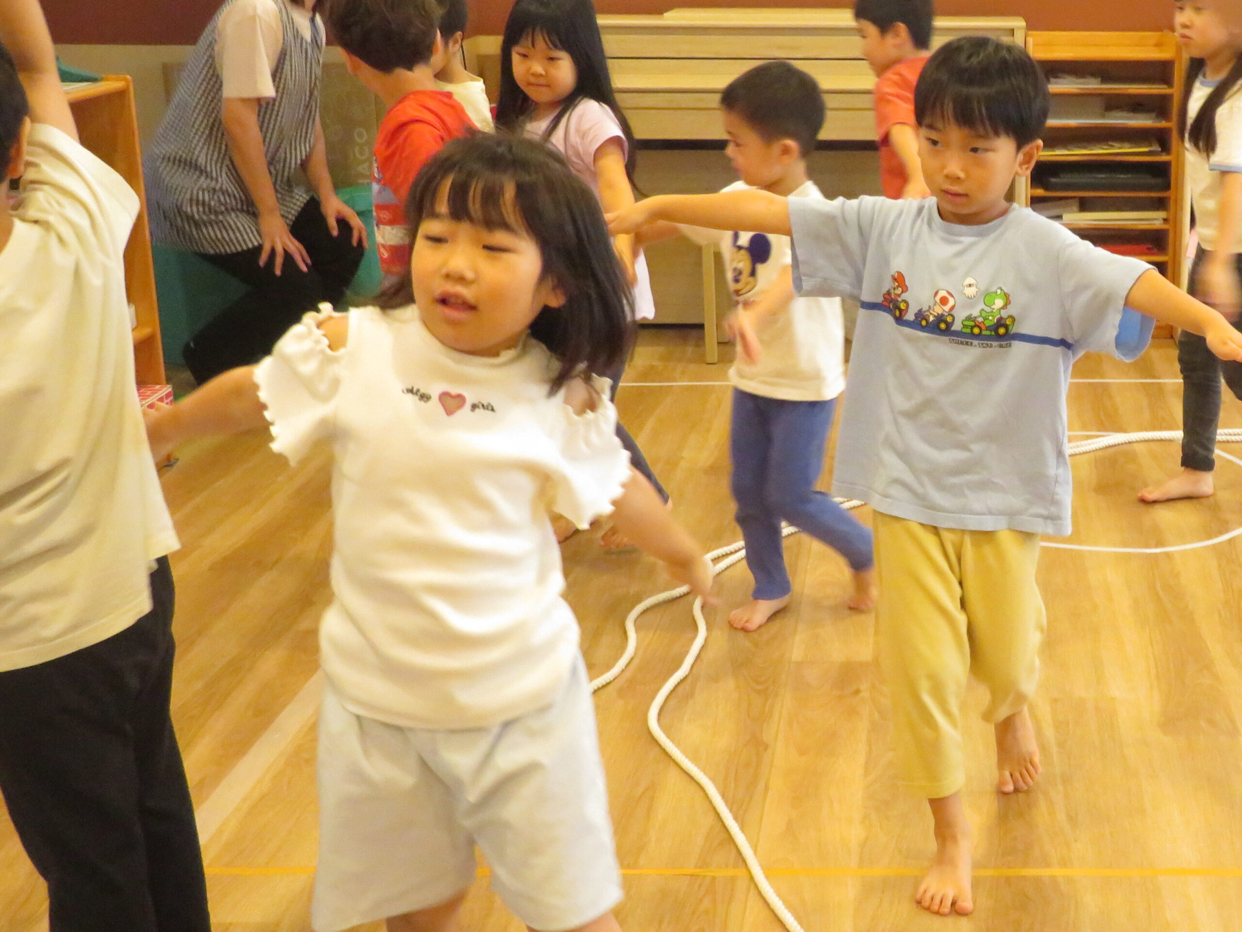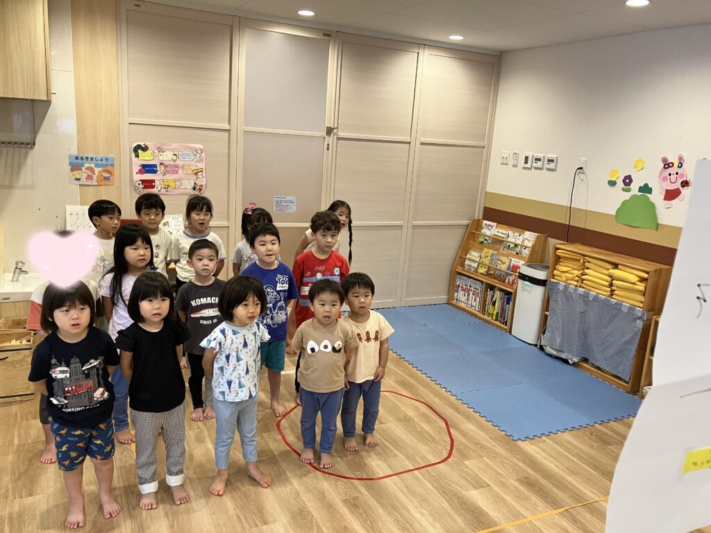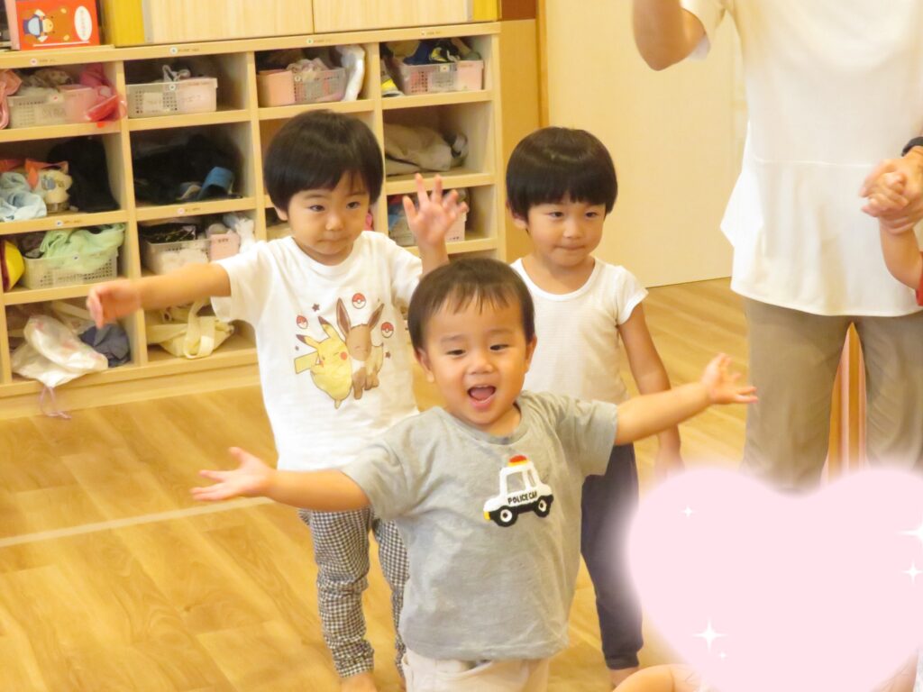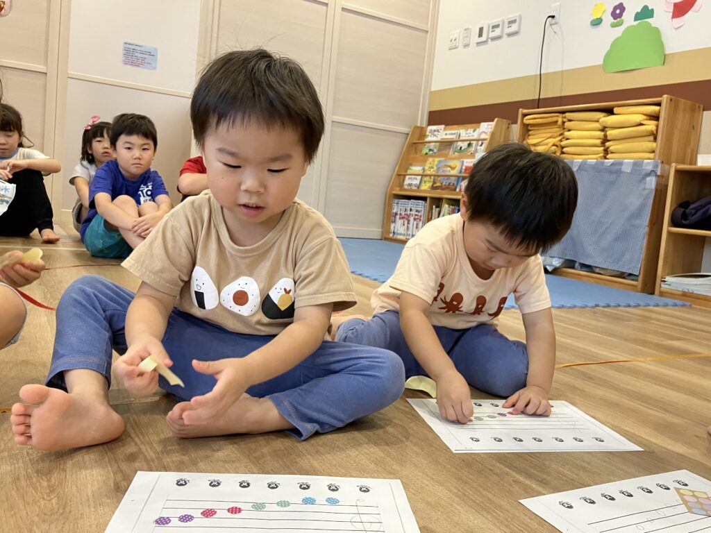 29日(月)のリトミックでは、季節の歌で『むしのこえ』『とんぼのめがね』を歌いました♪