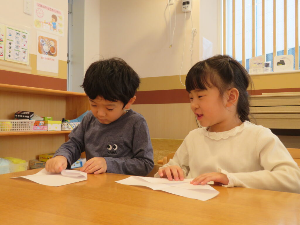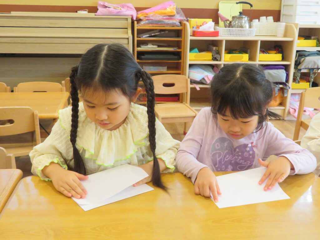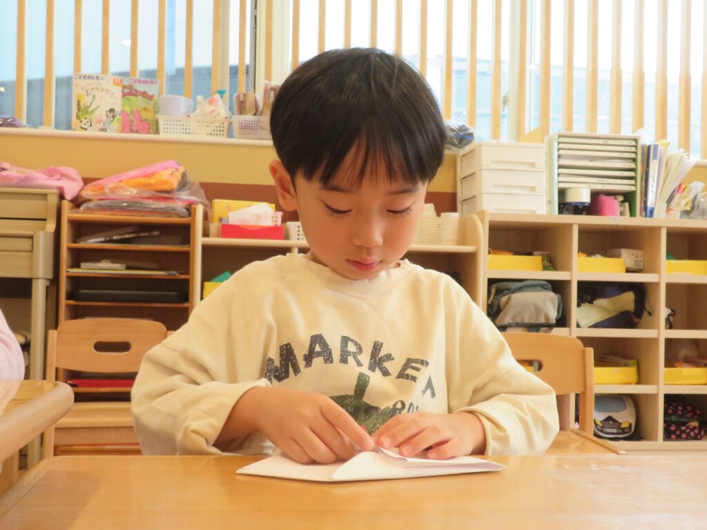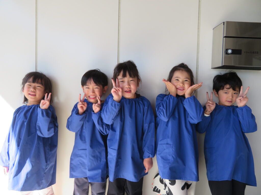 完成品を見ながら「クラスのみんなに見せたい!」とウキウキで園に戻りました。