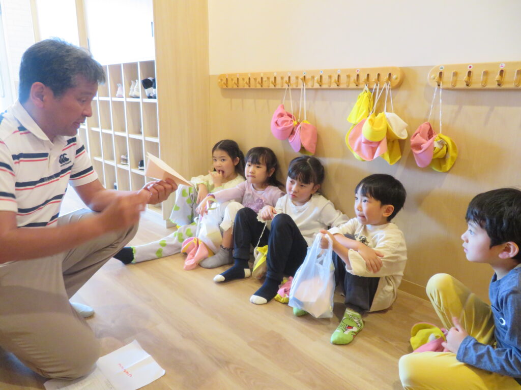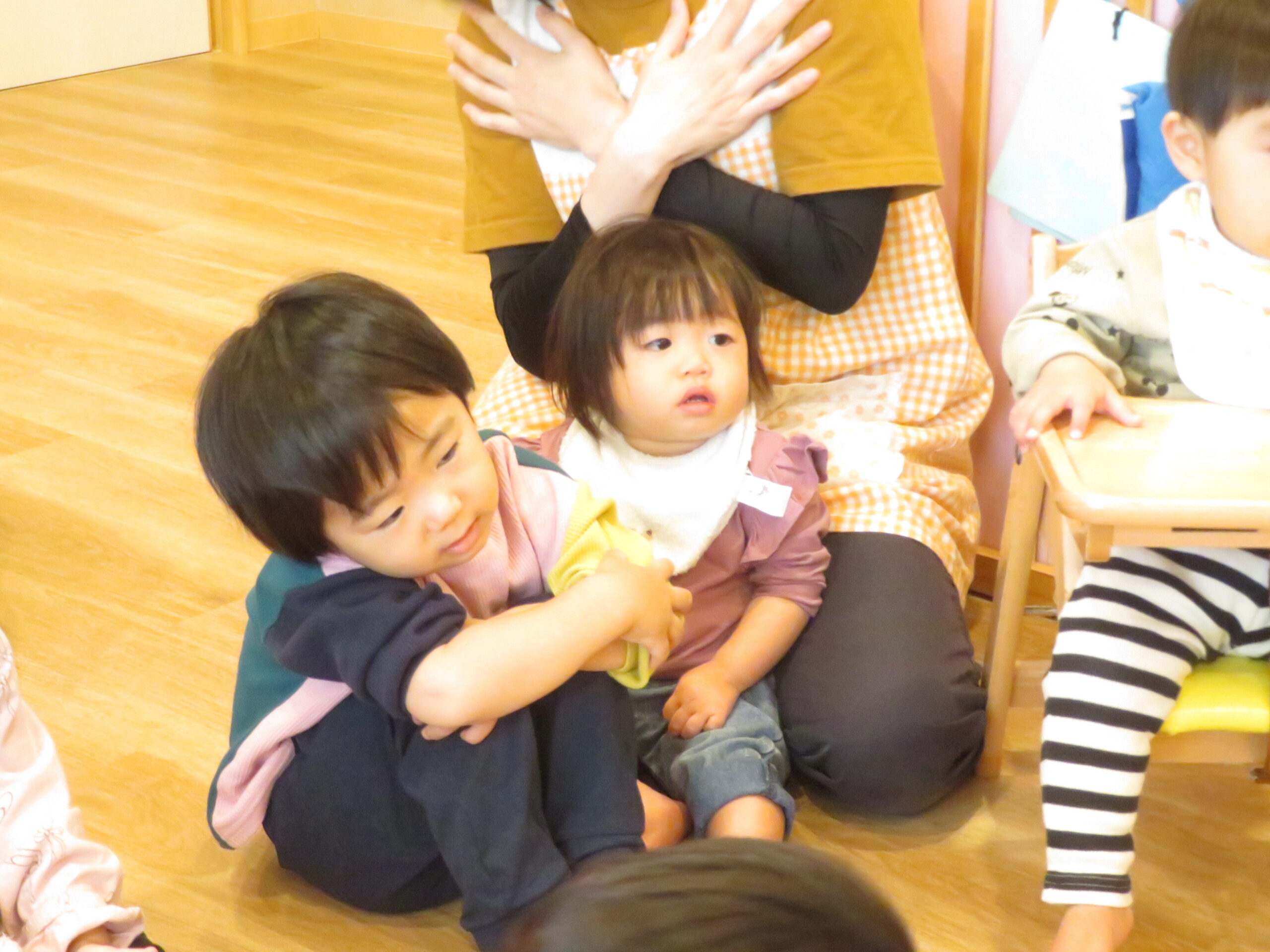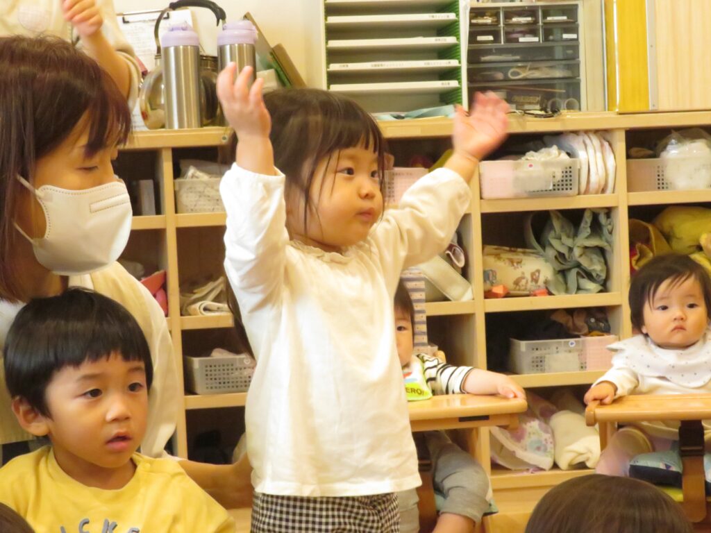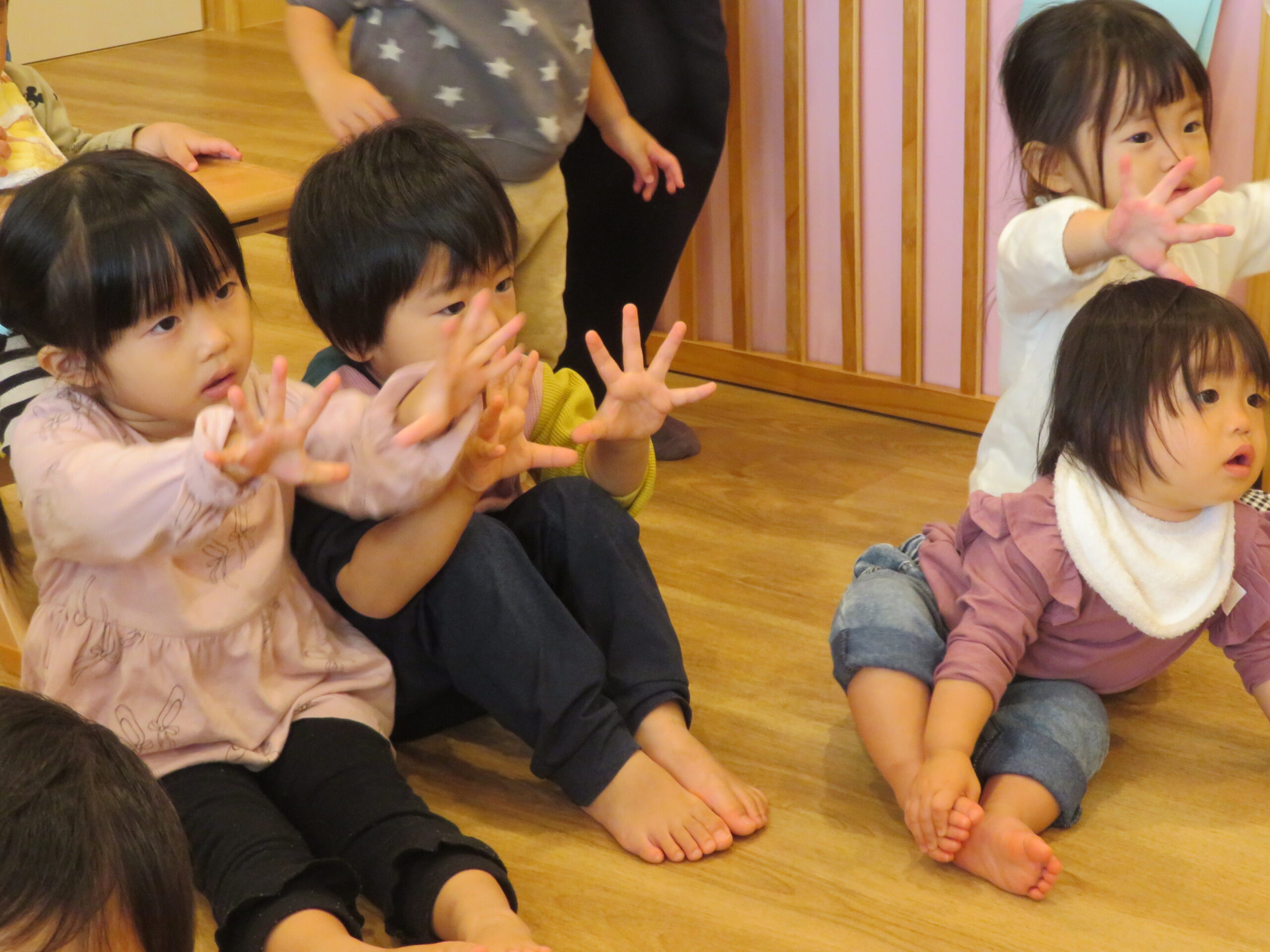 お話を聞いた後は、『やきいもグーチーパー』と『ごんべさんの赤ちゃん』で手遊びしました✋