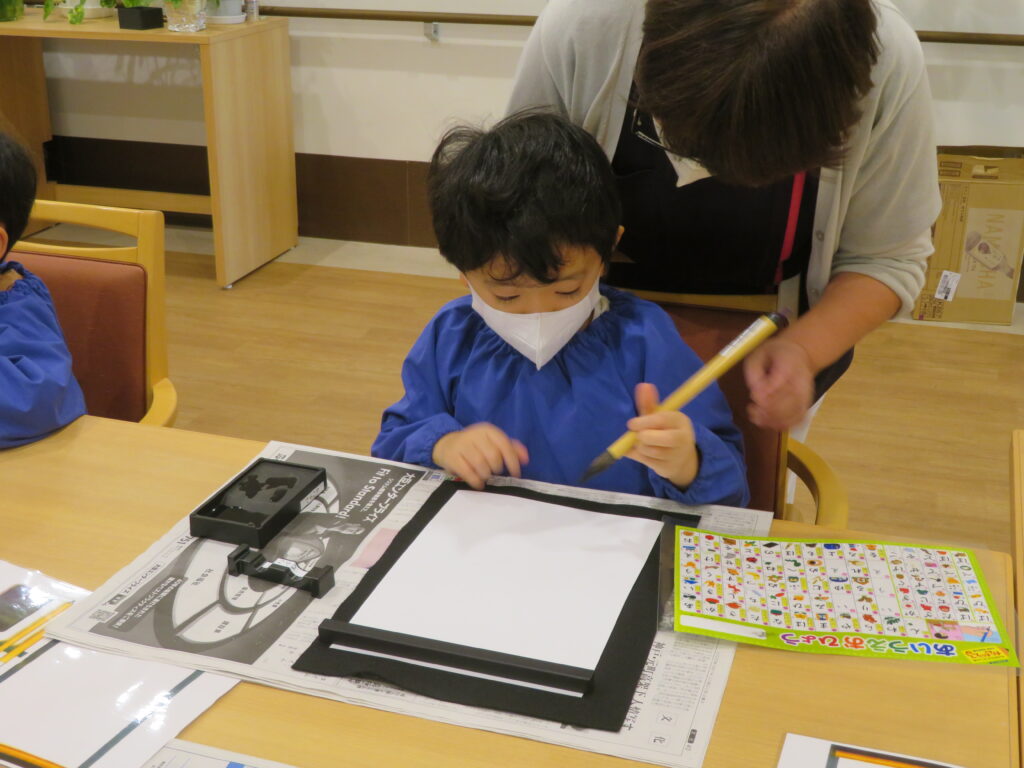 利用者さんとお話したり、筆の持ち方を教わりながら行いました✨