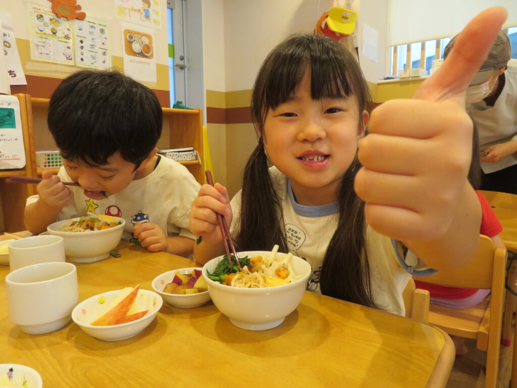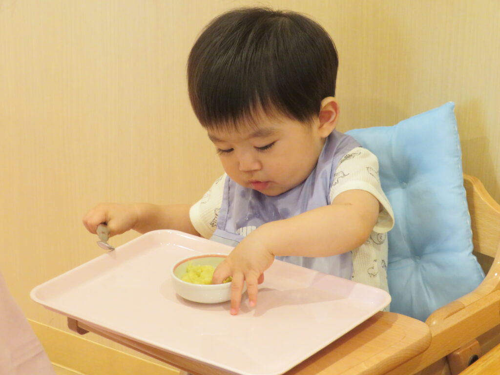 さくら組さんも手やスプーンを使って、上手に給食を食べていました👐