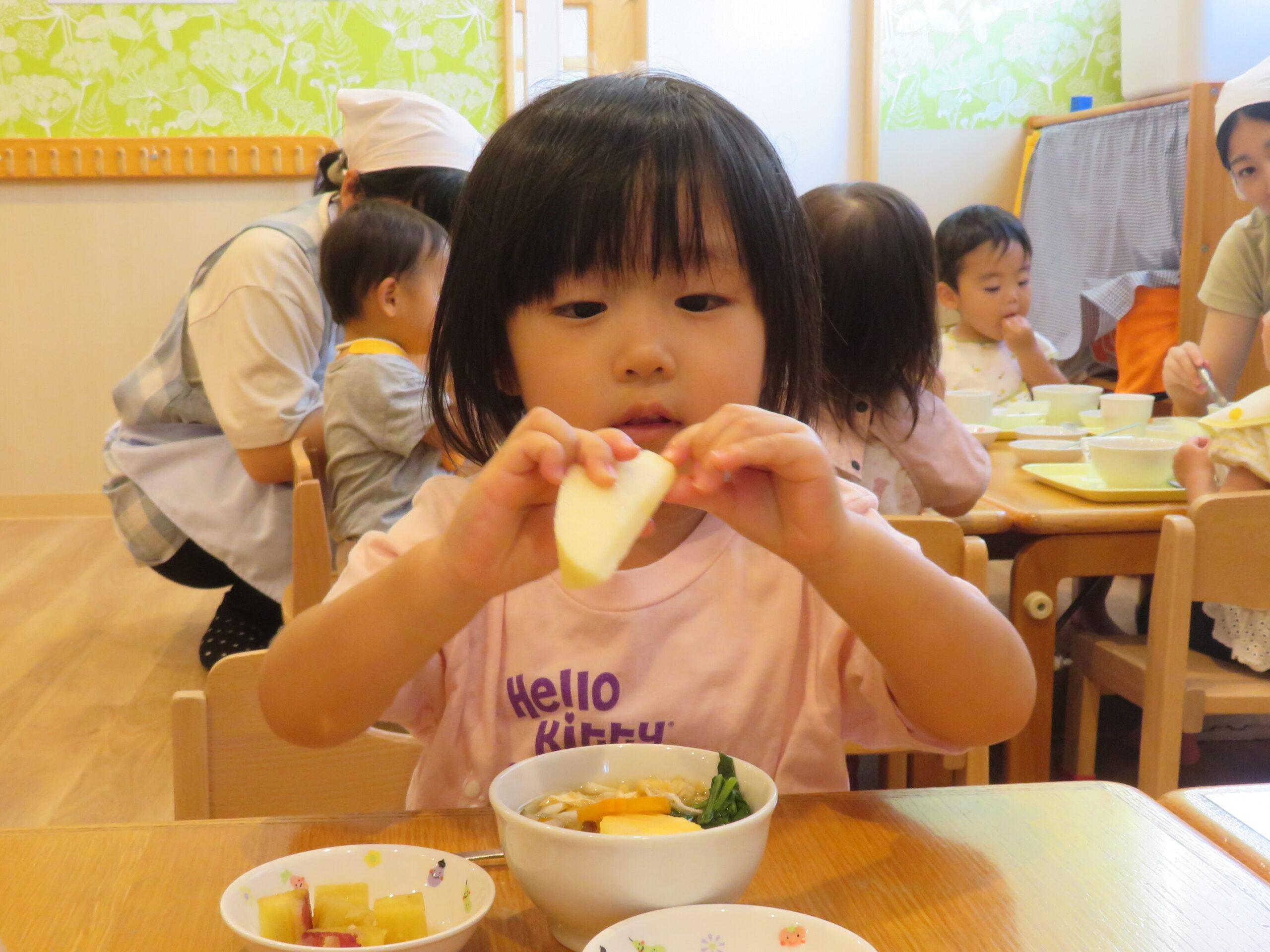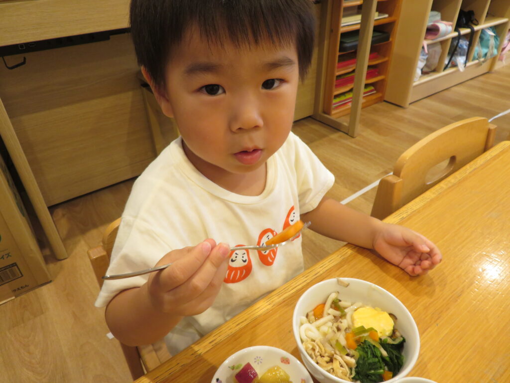 ひまわり組さんは「うさぎ見つけたよ!」や「月が無くなっちゃった」などお友だちや先生とお話しながら楽しい給食の時間を過ごしました(^^♪