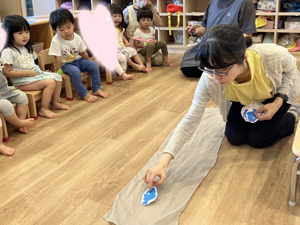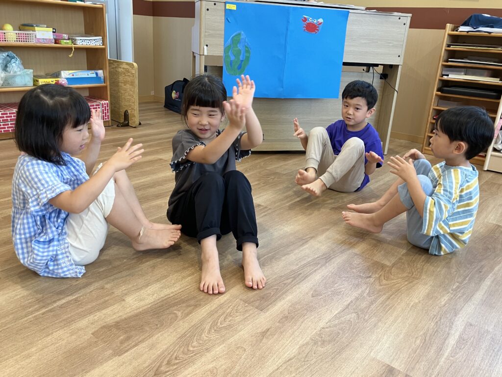 19日(火)のリトミックでは、『うみ』の曲でいろんな3拍子♪