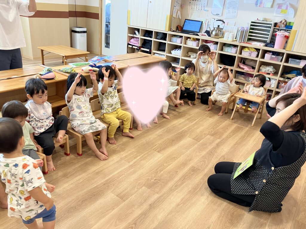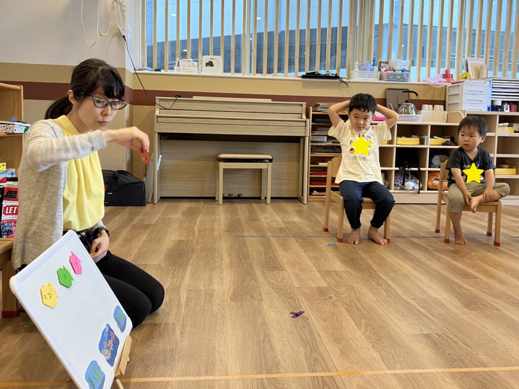 手遊び『ららら右手』『パンダうさぎコアラ』では、先生のマネをしながら手を動かしたり、体をゆらゆらさせて楽しむ姿も♡