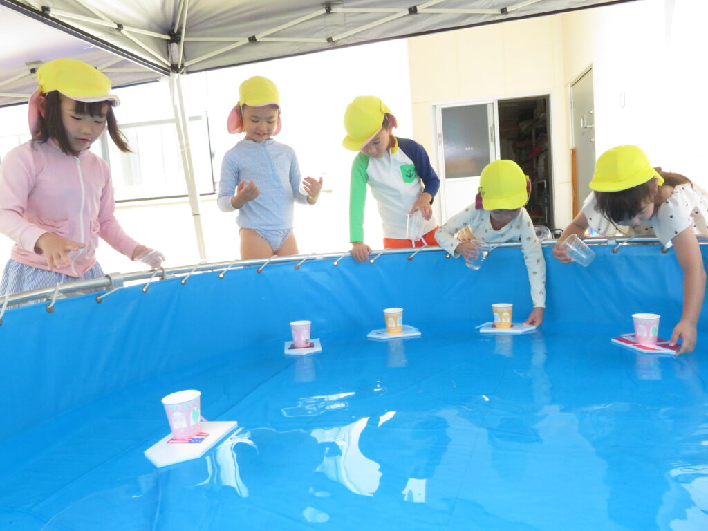 水圧で前に進んでいく船を見て「すごーい!!進んでる!!」と大興奮の年長さんでした!