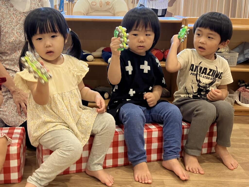季節の歌の『カエルの合唱』『たなばたさま』を鈴を鳴らしながら歌いました♪