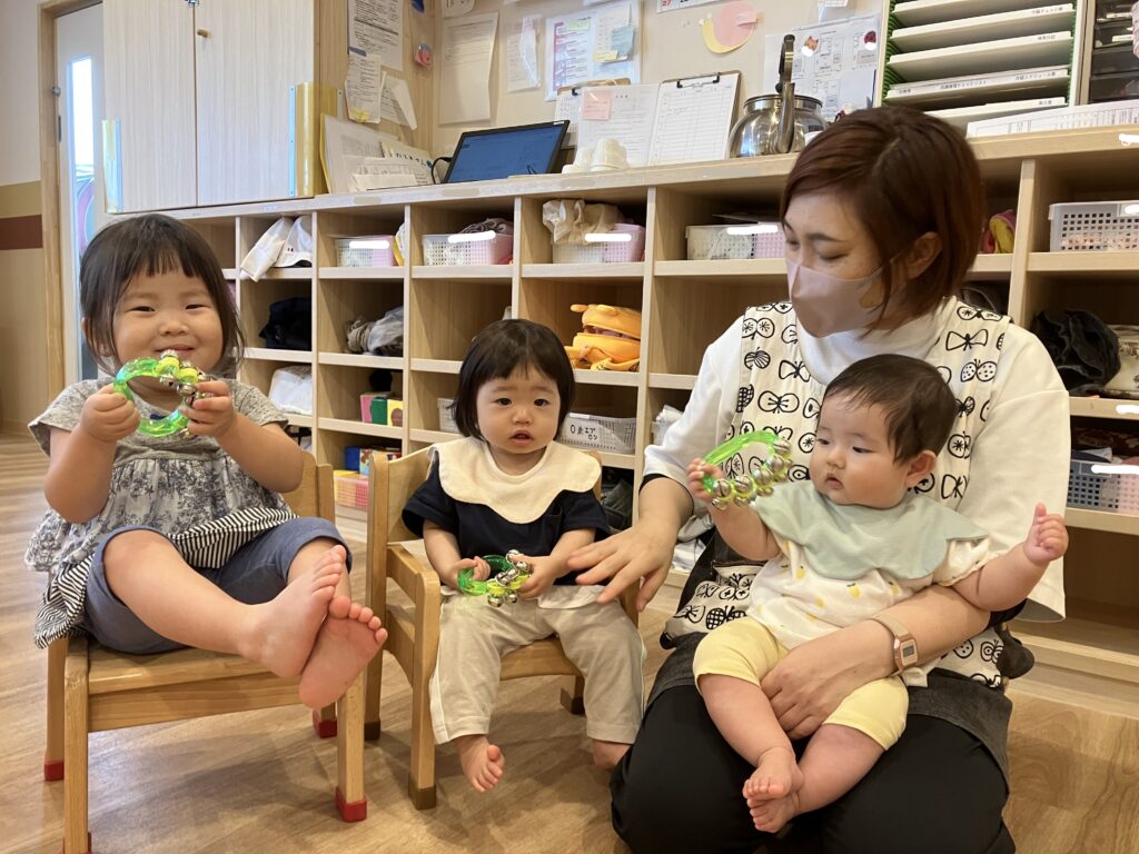 鈴を使う時には「お歌が始まるまでお胸の前で持って、鳴らさないようにお願いします」と教えてもらうと、ギュッと優しくお胸の前で楽器を持ちながら待っていたさくら組さん!😲✨